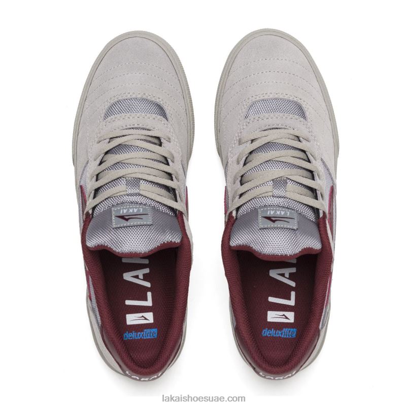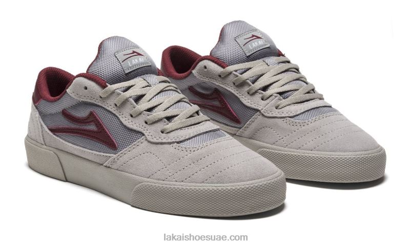 حذاء تزلج Lakai Cambridge - رمادي / عنابي من الجلد المدبوغ P>