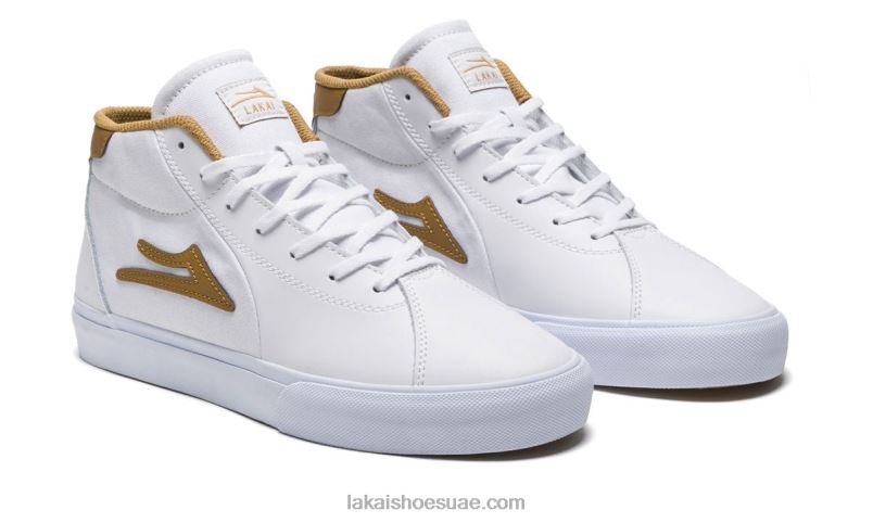 Lakai Flaco 2 حذاء تزلج جلدي متوسط - أبيض / تبغ